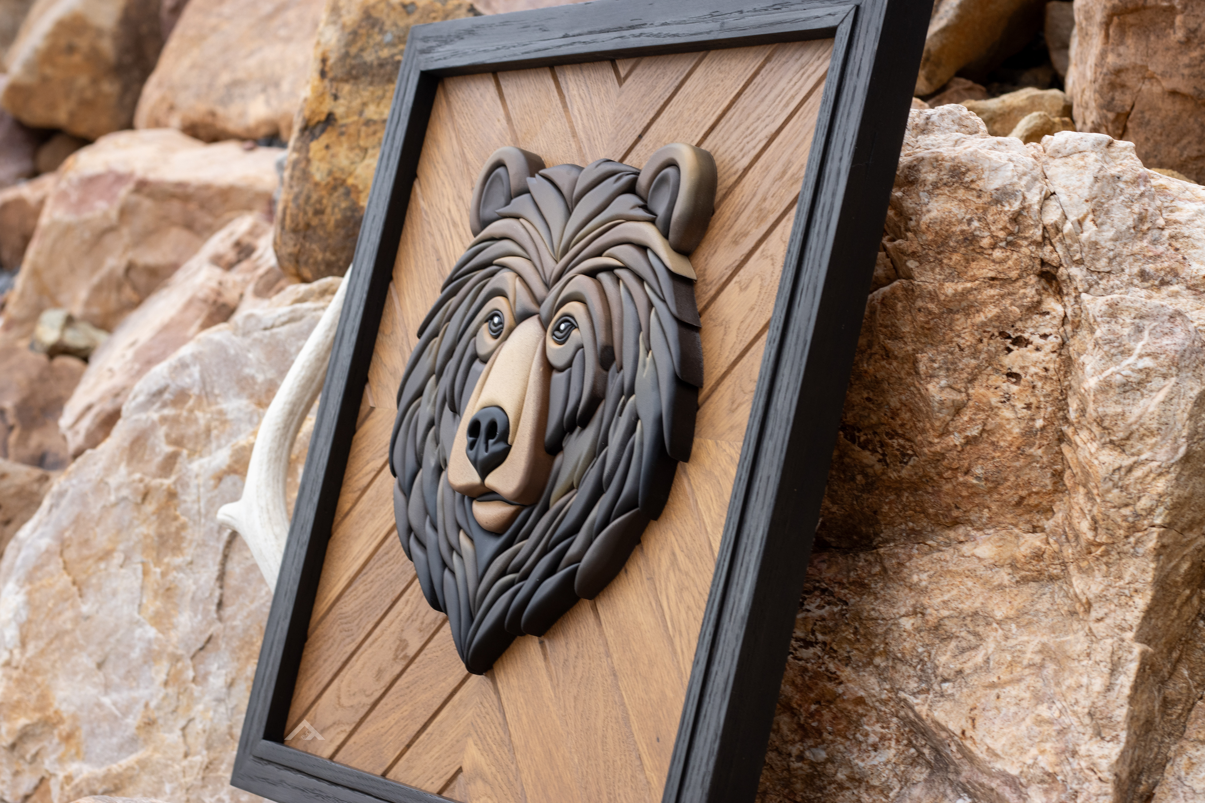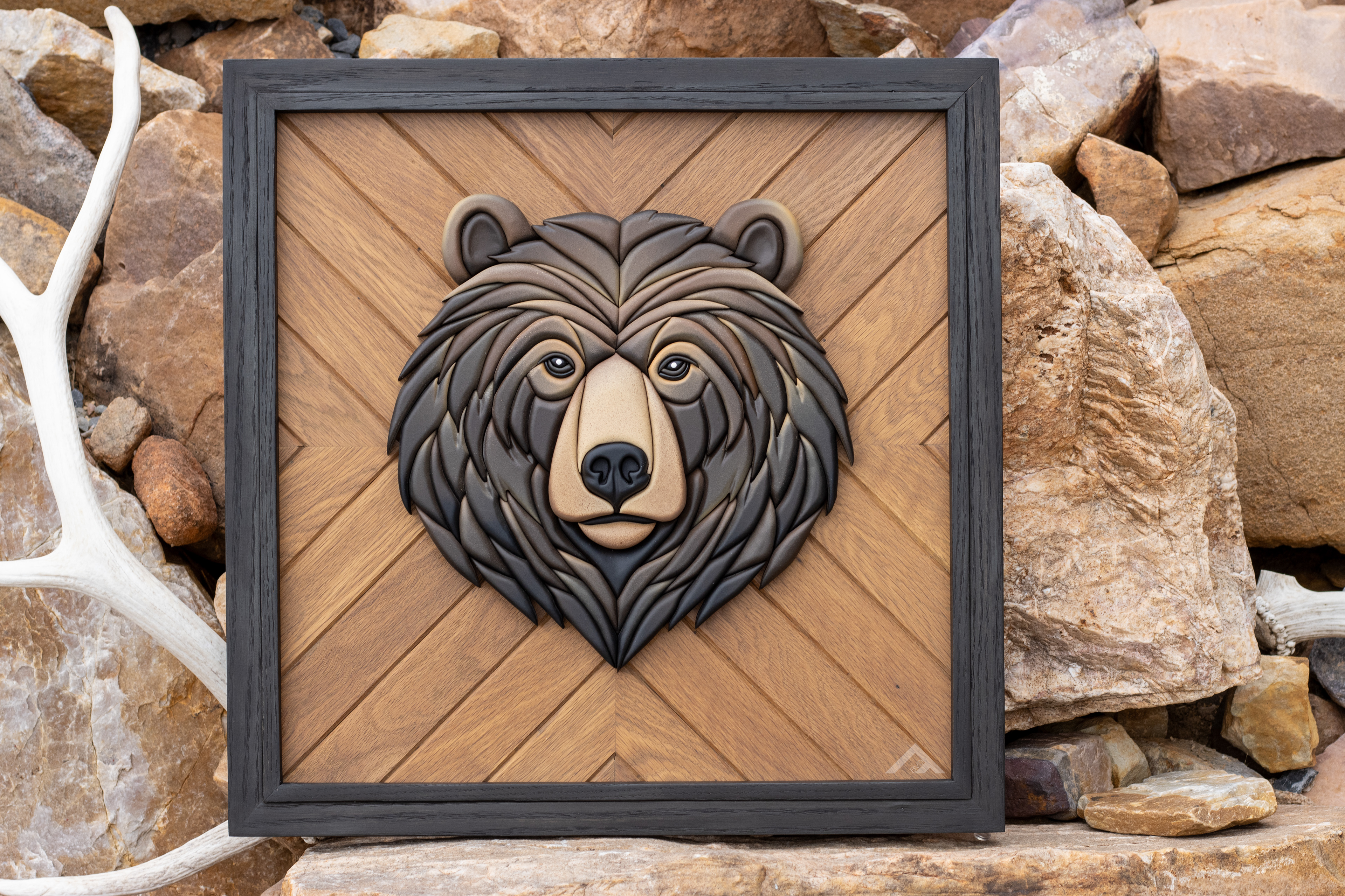 Timber King - 18" x 18" 3D bear on oak backer and frame.